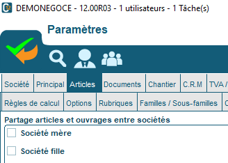 Ainsi, tous les articles ou ouvrages de la société mère sont récupérés dans la société fille. Inutile de créer 2 fois les éléments. En revanche, les fichiers clients, devis, factures,… sont bien distincts.