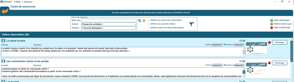 Le centre de ressource permet de télécharger les vidéos explicatives de Codial.