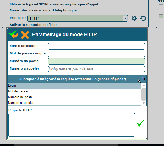 Pour mettre en place ces 2 fonctionnalités de couplage Téléphone-Informatique (CTI), il faut renseigner dans les paramètres la requête HTTP avec les variables rattachées à chacun des postes téléphonique.