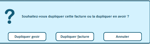 Le bouton DUPLIQUER est présent dans le menu OUTILS de la facture. Une question est alors posée :