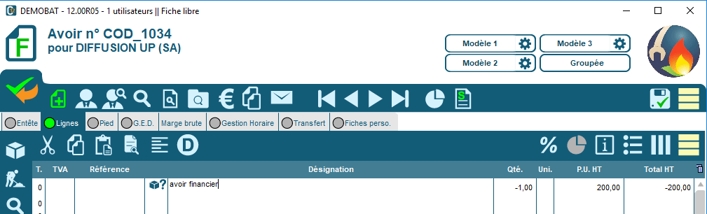 L’avoir financier dans CODIAL permet d’émettre un document venant réduire le montant d’une facture initiale. Dans ce cas, il n’y a pas de reprise de matériel.