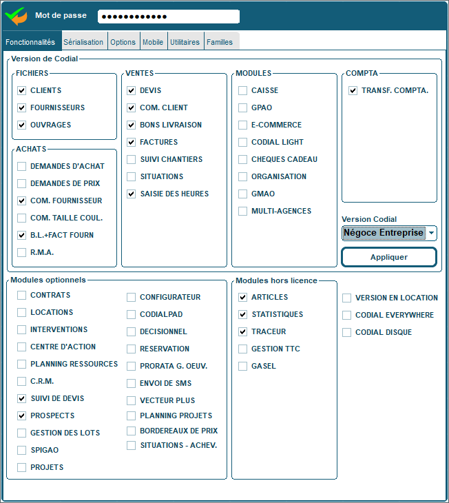 L’ERP CODIAL est disponible sous différentes gammes: PME et Entreprise.