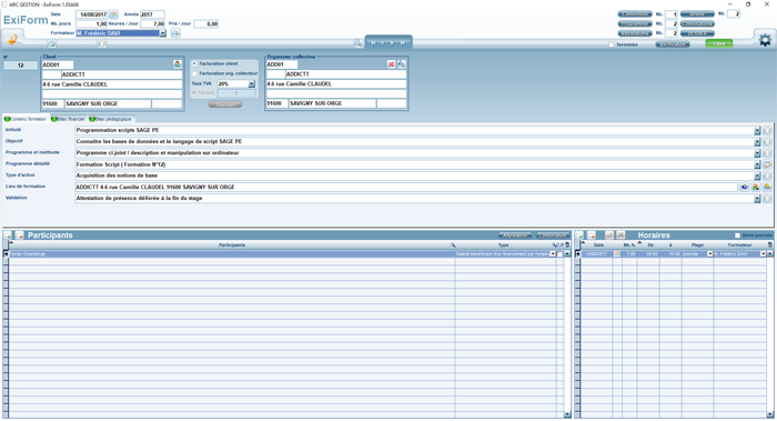 Exiform est un logiciel à part entière. Toutefois, il utilise la base de données de Codial pour récupérer les coordonnées du client et les informations sur les participants (contacts de la fiche client).