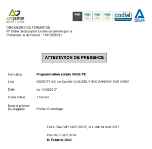 Exiform édite les attestations de formation pour les stagiaires.