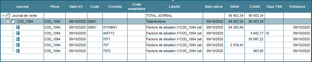 Exemple d’écriture comptable d’une situation dans Codial: