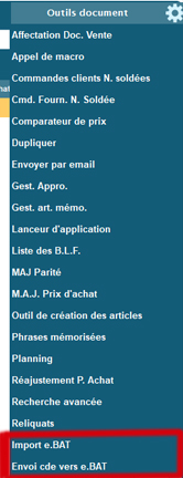 Vous pouvez envoyer la commande fournisseur sur e.BAT par le menu OUTILS du document.