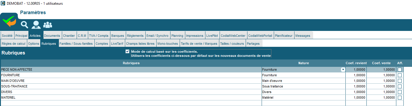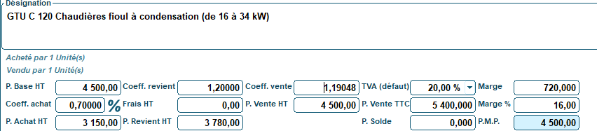 Pour ne pas avoir un prix à 0€, il est donc recommandé de bien renseigner les prix d’achat et les coefficients dans les rubriques.