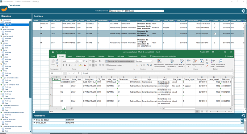 Exemple d’export de donnée sur Excel avec le Décisionnel Codial :