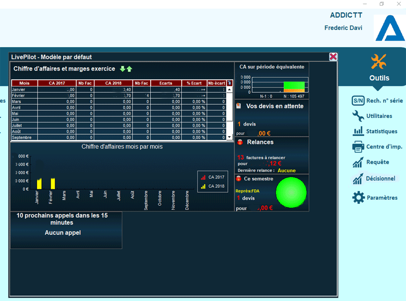 Le LivePilot est construit avec des briques d’indicateurs ou de données. Chacun peut se paramétrer facilement et rapidement une synthèse d’activité ou d’indicateur de productivité, de suivi ou de commerce.