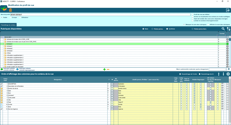 Depuis le centre d’impression, vous allez créer votre propre « VUE » afin de choisir les informations visibles.