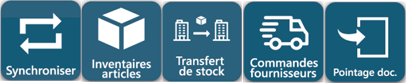 L'application CodialMobile Stocks a été conçu pour fonctionner sur un téléphone portable avec Androïd. 5 fonctions principales sont accessibles par des icônes: